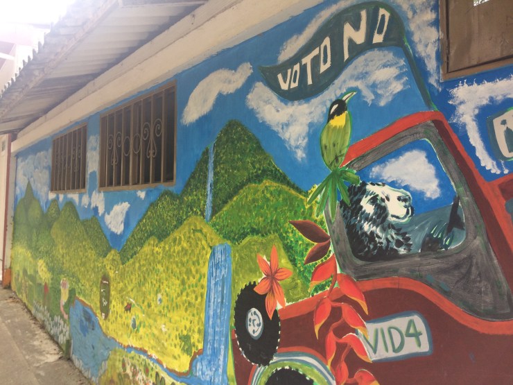 Nowadays, the town faces different pressures. Its citizens recently became some of the first in Colombia to officially vote down a proposal for open pit gold mining in the town’s beautiful surroundings, a plan that would have been as lucrative as it would destructive. Even the local schoolchildren had their say – unable to vote, they painted a huge colourful mural on their school wall, complete with wildlife and the slogan ‘Voto No’.